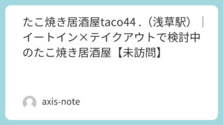 東京-浅草 たこ焼き居酒屋taco44 .(浅草駅)|イートイン×テイクアウトで検討中のたこ焼き居酒屋【未訪問】 浅草駅のたこ焼き居酒屋taco44 .を未訪問で整理。イートインとテイクアウトの使い分け、価格帯、利用シーンを浅草グルメ視点で比較検討できる内容です。 2026.04.01 東京-浅草