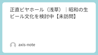 東京-浅草 正直ビヤホール(浅草)|昭和の生ビール文化を検討中【未訪問】 浅草の正直ビヤホールを未訪問で整理。ビールのみの提供スタイルや利用シーン、事前確認情報をまとめた浅草ビヤホール検討記事。 2026.04.01 東京-浅草