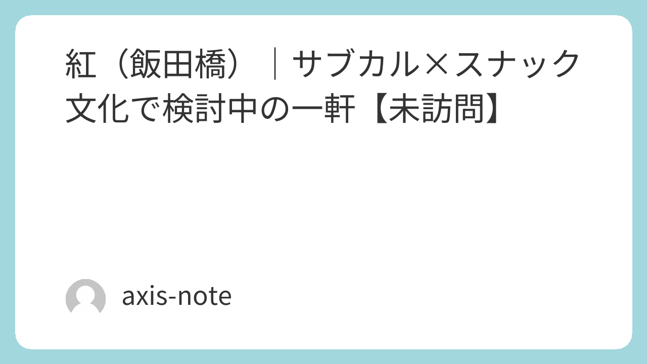 紅は、飯田橋エリアでスナックを検討する中でも、サブカルチャーや場の空気感を軸に選ぶ際の候補として整理しています。加えて、昼はランチが美味しいという情報もあり、飯田橋ランチと夜利用の両軸で検討できる点も特徴です。現段階では未訪問のため評価は行いませんが、飯田橋スナックの中でも特徴的なポジションにある店舗として、引き続き比較検討対象としています。