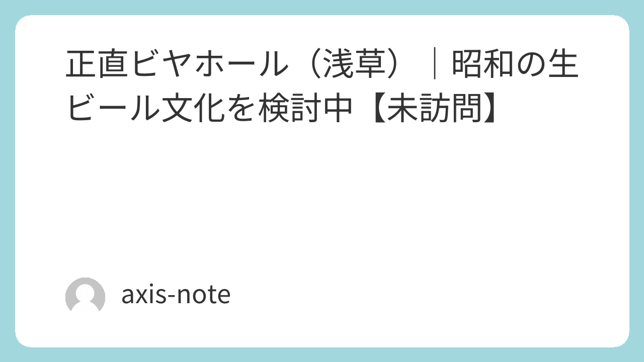 正直ビヤホール(浅草)|昭和の生ビール文化を検討中【未訪問】